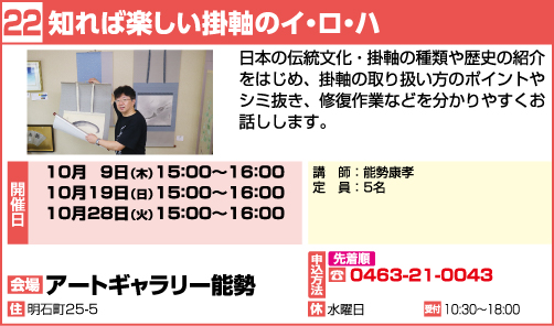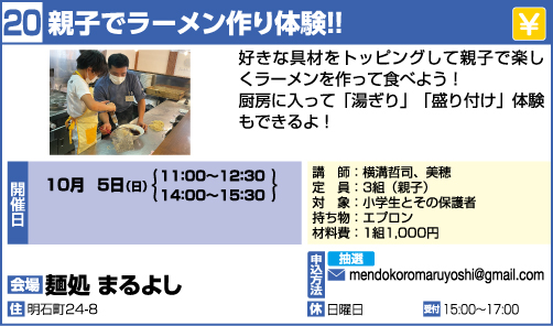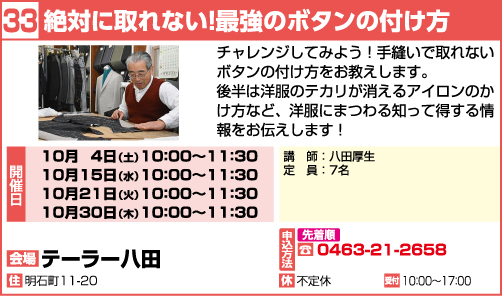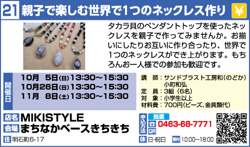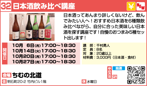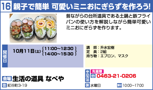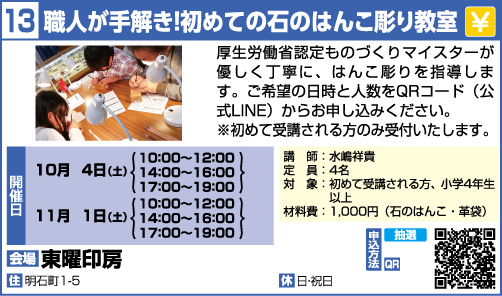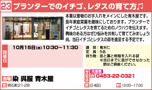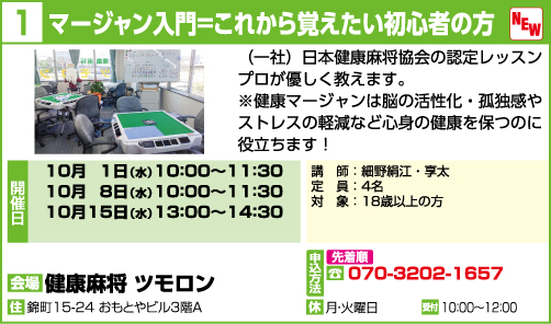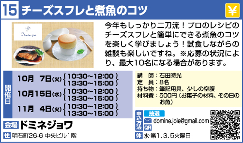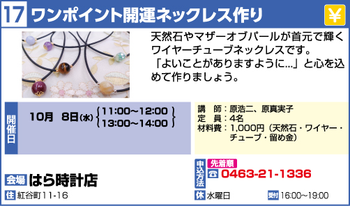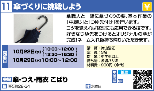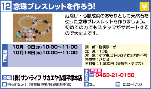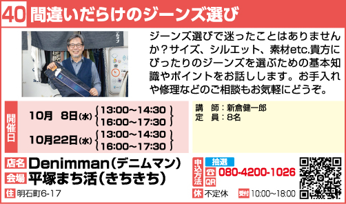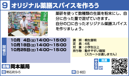 以下の講座一覧から参加したい講座を選び、店舗に直接ご連絡し、予約ください。