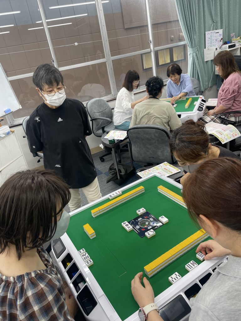 4枚マージャンに慣れてきたら7枚マージャンにもチャレンジ!4枚マージャンよりも難易度があがり、苦戦しながらも頑張ってチャレンジしていました。多くの人はマージャンに夢中で、講座終了があっという間に感じたみたいです。